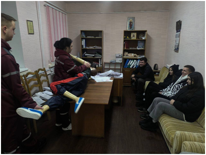 15.12.2025 фельдшер выездной бригады ОСМП, председатель комиссии по социальным вопросам и здравоохранению Молодежного совета при Палате представителей Национального собрания Республики Беларусь Михайленко Н.Н. и фельдшер выездной бригады ОСМП Казадаев А.А. провели тренинг для членов Молодежного совета при Рогачевском районном совете депутатов в рамках реализации проекта «СПАСИ ЖИЗНЬ». Проект реализовывается по инициативе Молодежного совета при Палате представителей Национального собрания Республики Беларусь совместно с Белорусским Обществом Красного Креста. Цель проекта: обучение населения оказанию первой помощи.